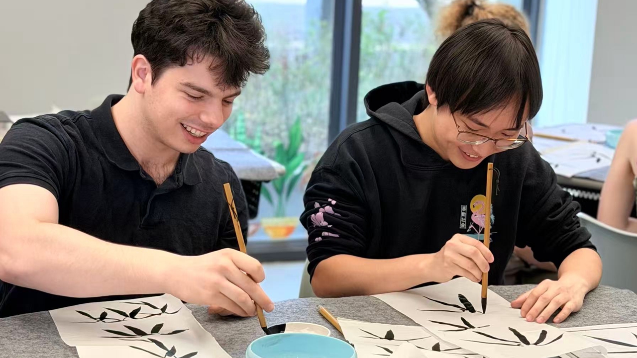 Around 25 international students at the Chinese University of Hong Kong, Shenzhen (CUHK-Shenzhen) learned traditional Chinese painting in a cultural workshop exploring Chinese culture.