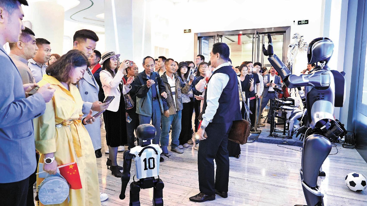 Humanoid robots greet visitors at the launch event of the 9S AI Intelligence Center in Longhua District. Photos by Chen Jianhua