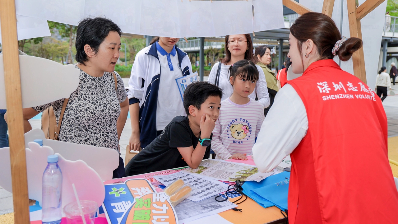 "I did not realize how many volunteer organizations there are just in Futian," she said, scanning the roughly 30 stalls that filled the fairground, showcasing the achievements of the district's volunteer teams, projects, and stations. "When I walked in, I was quite surprised. It's just so cool to see how specific they are — one for the Kunpeng Trail, fire department volunteers, all different kinds. It's amazing, honestly, to see so many people helping out just out of the goodness of their own heart."