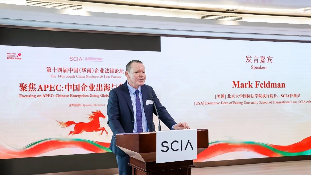 Mark Feldman, from the United States, is the executive dean of Peking University School of Transnational Law and an SCIA arbitrator, and said that for Shenzhen-based tech companies going global, national security and investment screening are major issues in the tech sector.