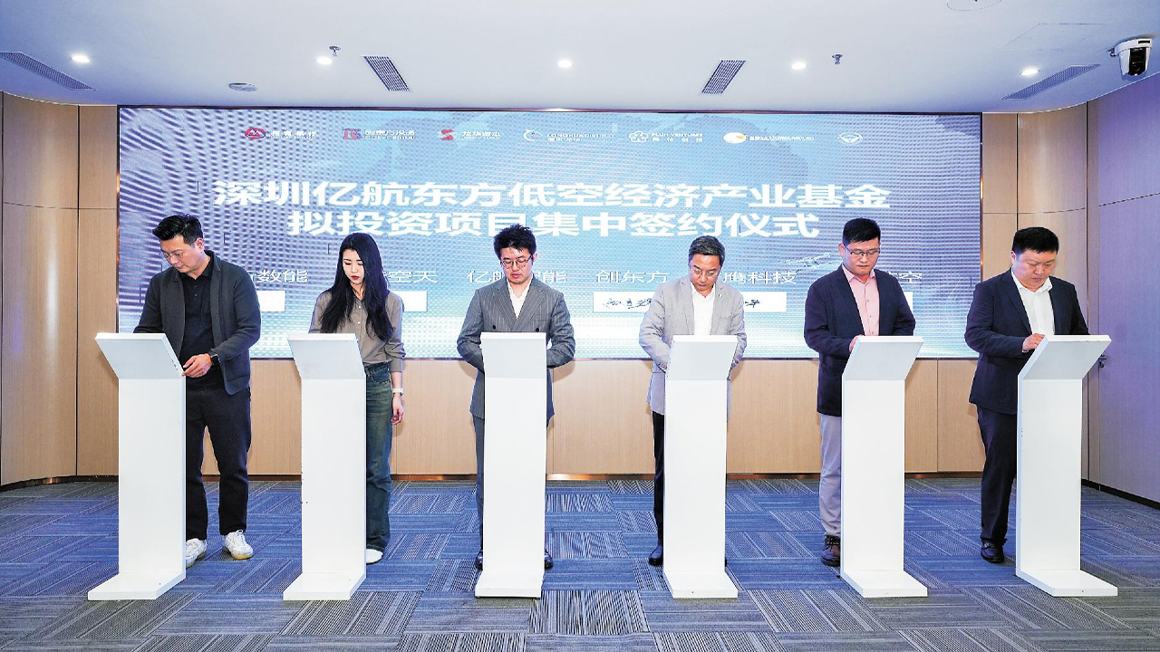 Representatives sign investment agreements for projects under the Shenzhen Ehang Dongfang Low-Altitude Economy Industry Fund at a conference in Longhua District on March 24. Photos by Chen Jianhua