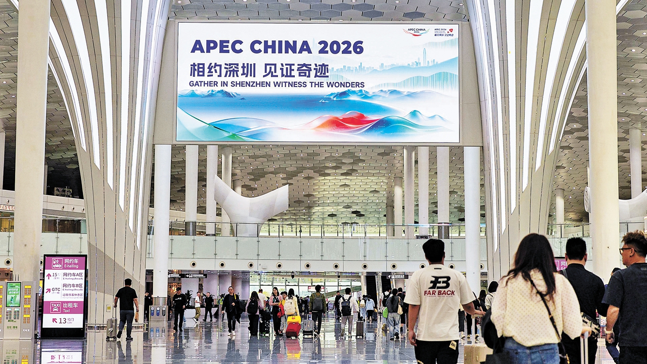 A large APEC billboard is displayed at Bao’an International Airport to welcome the 33rd APEC Economic Leaders’ Meeting in November. Bi Han