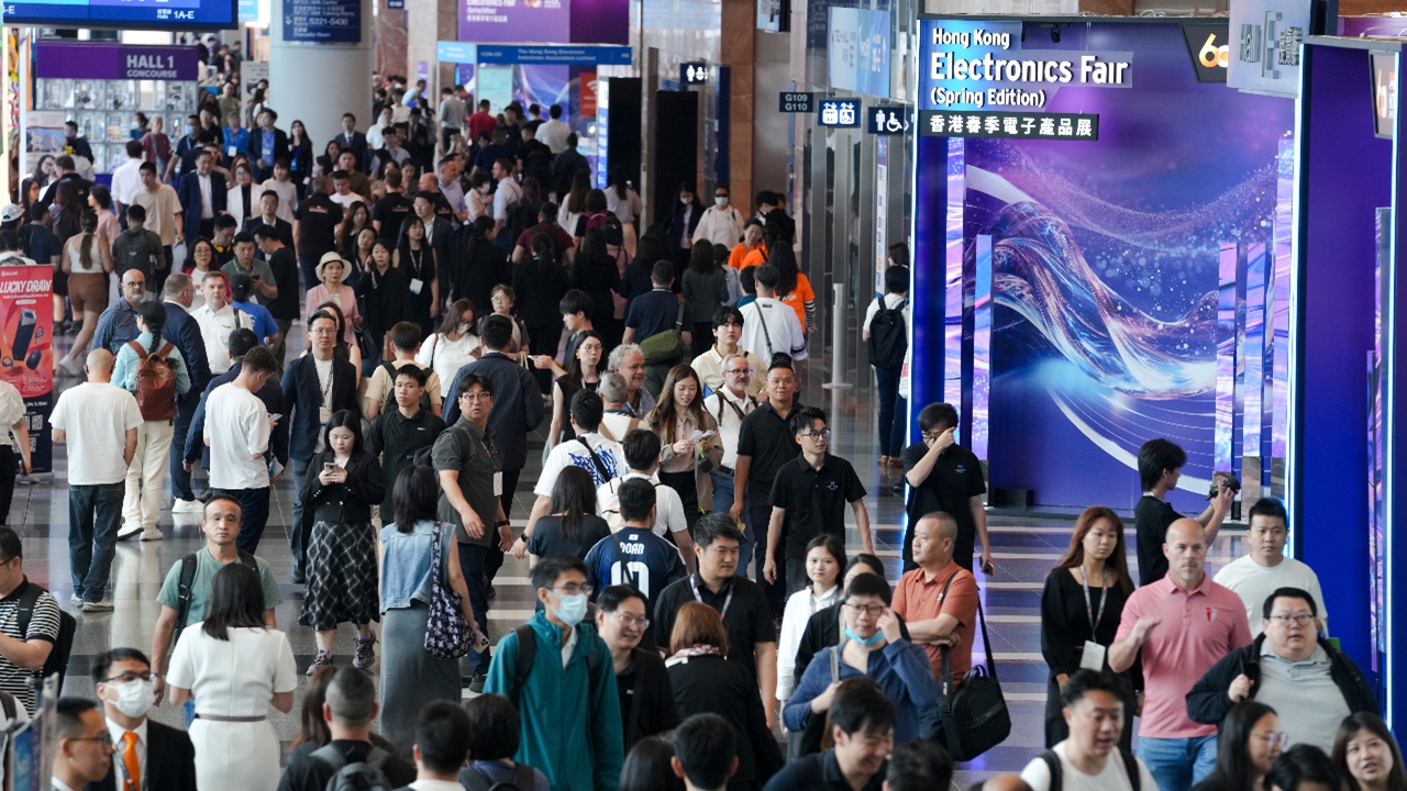 Crowds are seen at the Hong Kong Electronics Fair (Spring Edition) at the Hong Kong Convention and Exhibition Center on April 13. CNS