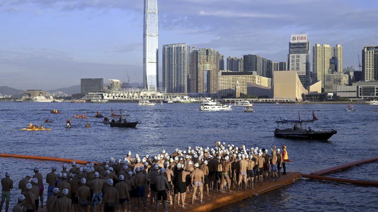 Swimmers wait to participate in the Victoria Harbour Swim in Hong Kong in this Nov. 22, 2025 file photo. Xinhua