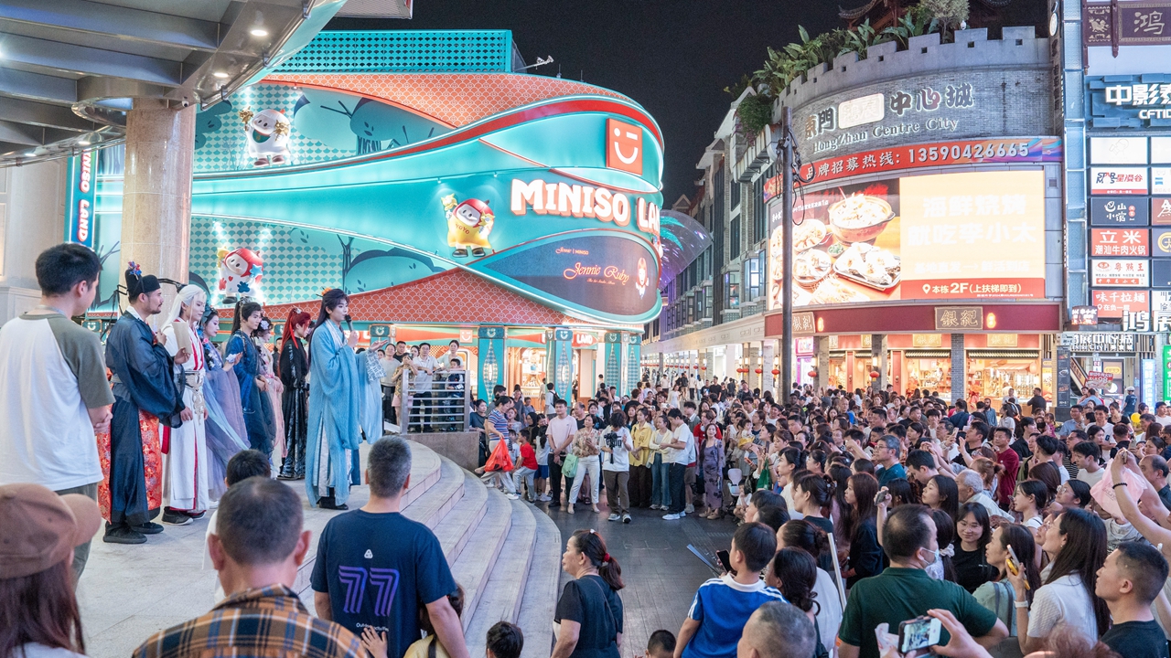 NPCs from Hengdian World Studios interact with residents at Dongmen Pedestrian Street in Luohu District. File photo